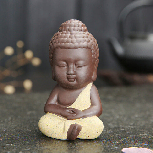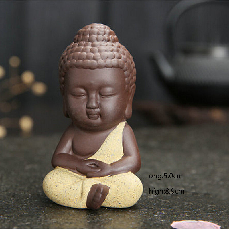 Take a glimpse of the Asian world through this 8.9-cm small mandala clay buddha statue monk figurine India mandala tea ceramic ornaments miniatures home decorative crafts. Add this to your home décor and let your house light up.